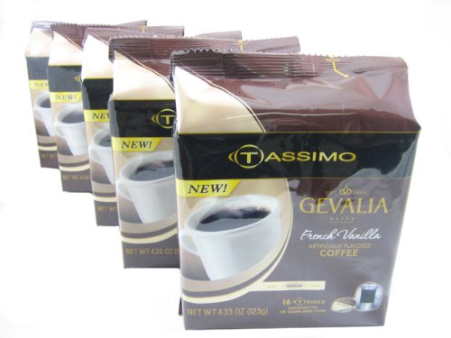 Tassimo Quality Assurance: Tassimo T-Discs: Gevalia French Vanilla Coffee T-Disc Pods (Case of 5 packages; 80 T-Discs Total)