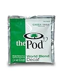 Green Tree Coffee's The POD single serve coffee pods deliver fresh brewed taste in the convenience of a single cup. The POD World Blend (Decaf) is a delicious blend of dark roasted Costa Rica Tarrazu, Sumatra Mandheling, and Brazil Cerrado coffees. The single serve system reduces cleaning and breakage while delivering a superb cup of coffee. 250 units per case. For use only with Soft Pod Coffee machines.